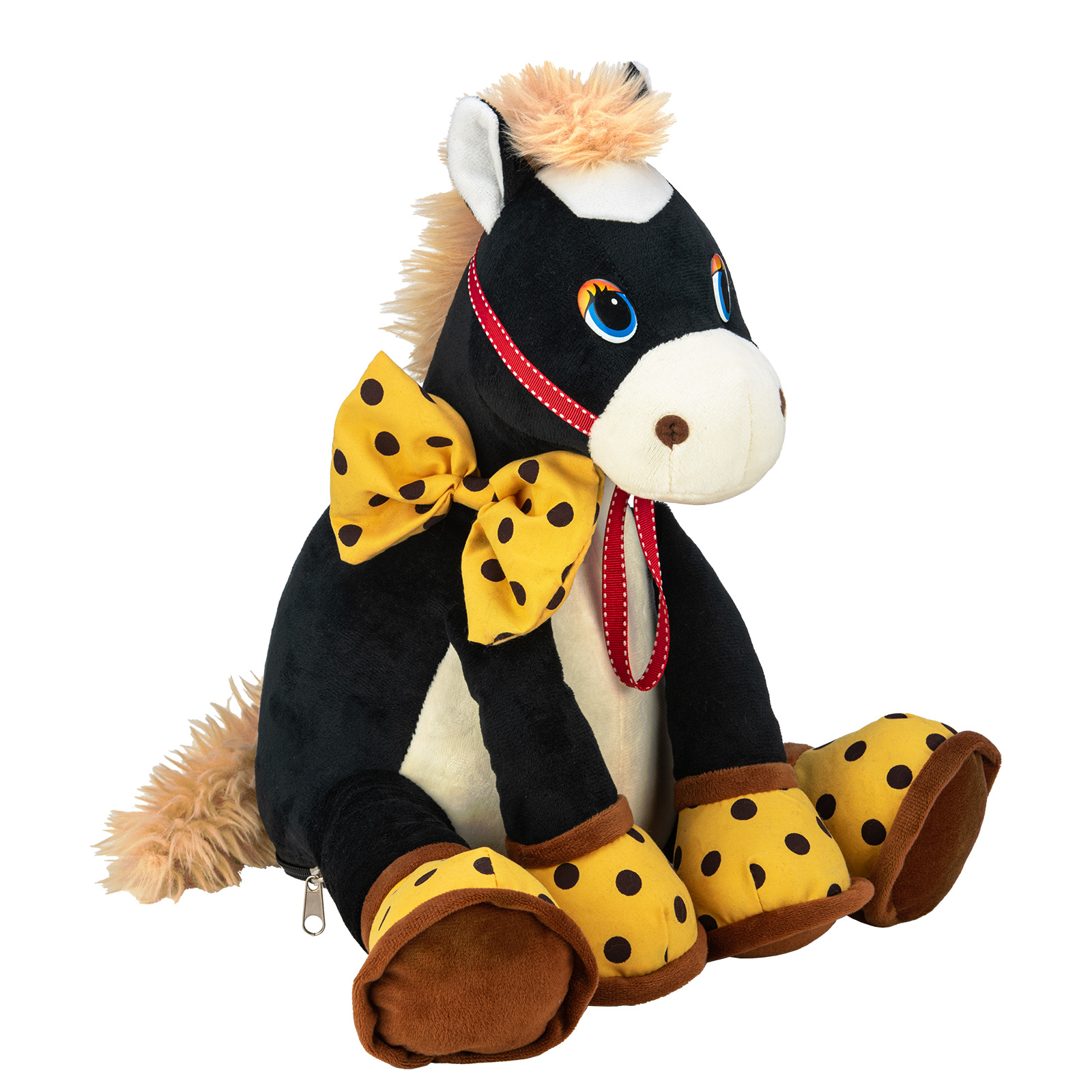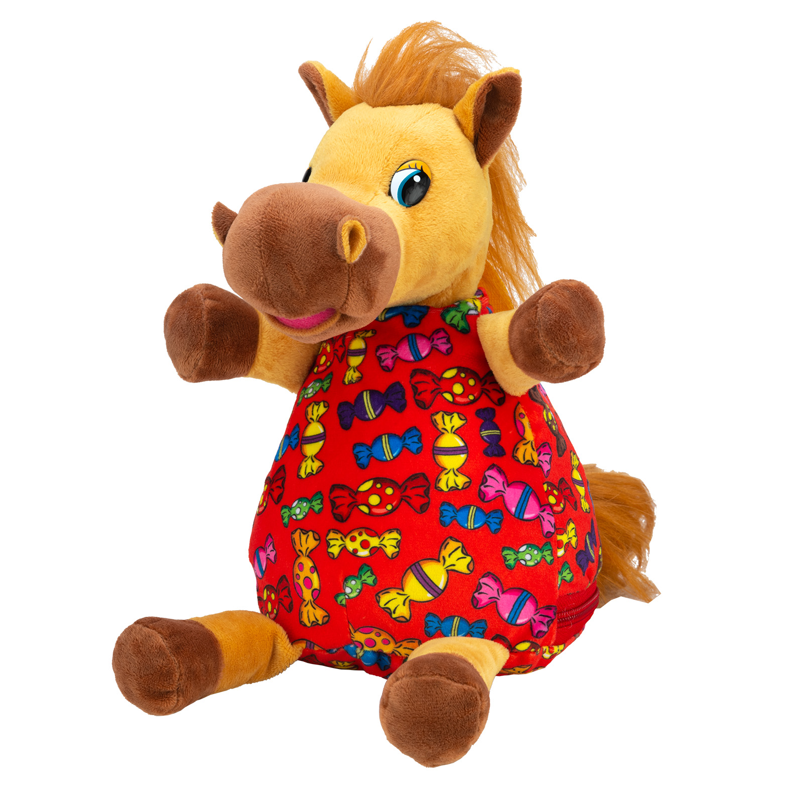 Если хочется доставить детям много-много радости, рекомендуем купить им стильные новогодние подарки в текстиле – они одинаково порадуют и дошкольников, и подростков. Так как 2026 год по Восточному гороскопу посвящен лошади, основная часть тканевой упаковки выполнена в виде этих симпатичных животных. Она также представлена сумочками или подушками: после окончания конфет их можно использовать для игр.